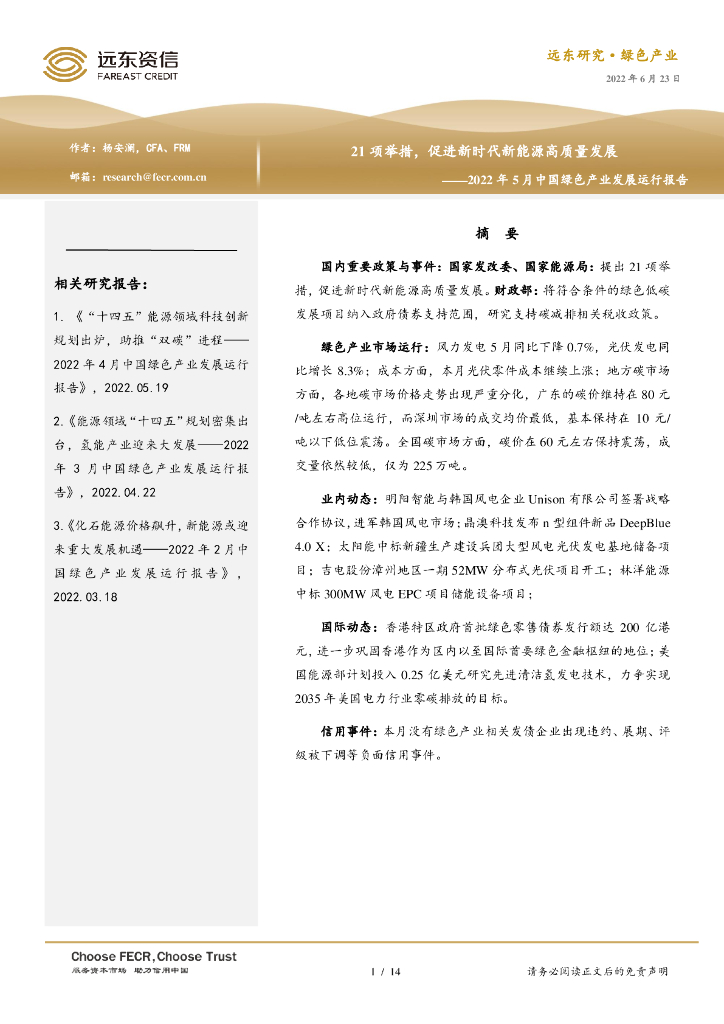 远东资信:21项举措,促进新时代新能源高质量发展 ——2022年5月中国绿色产业发展运行报告.pdf