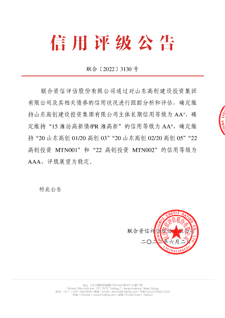 联合资信:山东高创建设投资集团有限公司2022年跟踪评级报告.pdf