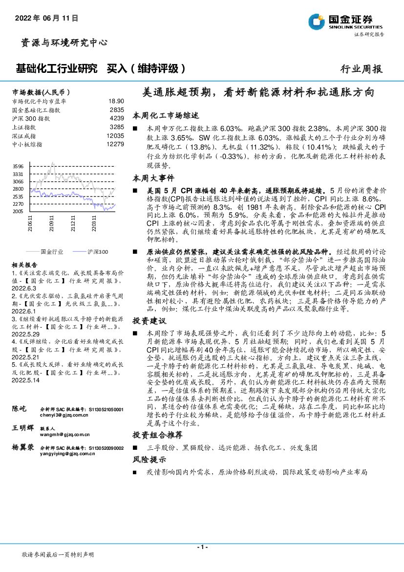 国金证券:基础化工行业研究:美通胀超预期,看好新能源材料和抗通胀方向.pdf