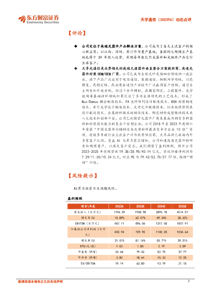 东方财富证券:天孚通信(300394)-动态点评:23年业绩快报高增长,致力于成为全球领先的光器件企业.pdf