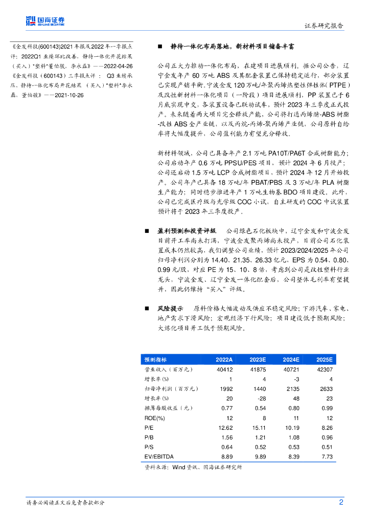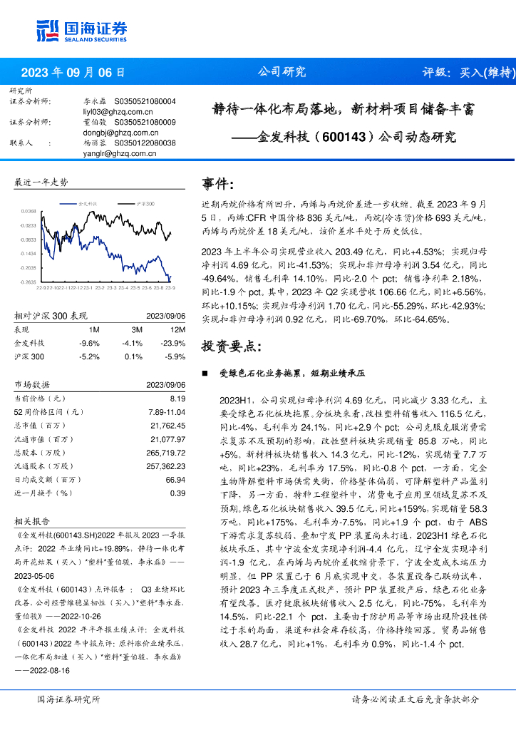 国海证券:金发科技(600143)-公司动态研究:静待一体化布局落地,新材料项目储备丰富.pdf