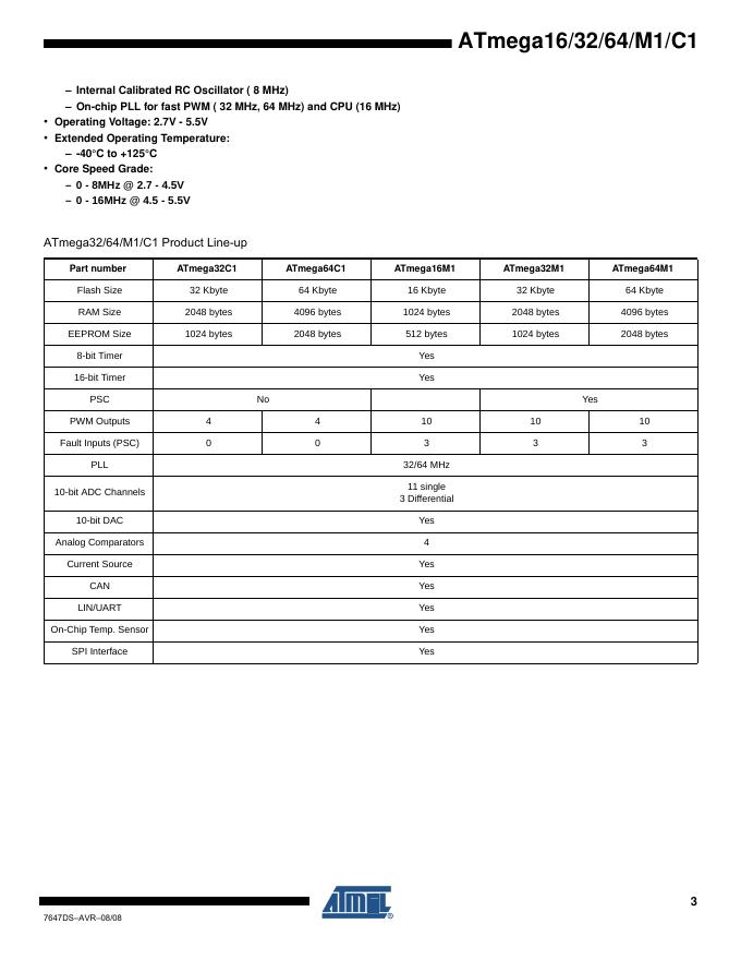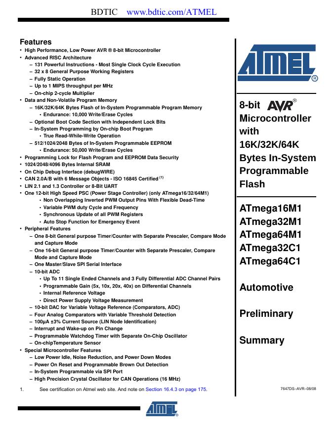 ATMEL 爱特梅尔 AVR 微控制器ATmega32M1 数据手册.pdf