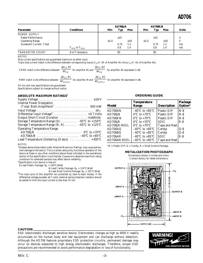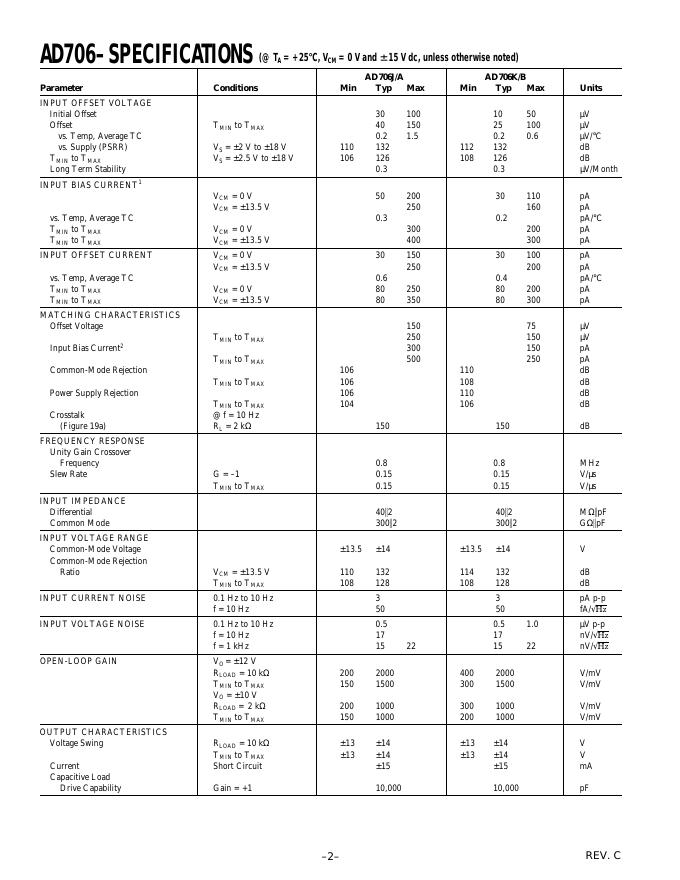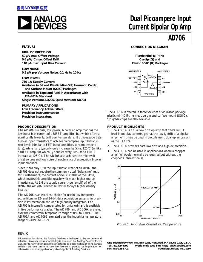 ANALOG DEVICES Dual Picoampere Input Current Bipolar Op Amp AD706 数据手册.pdf