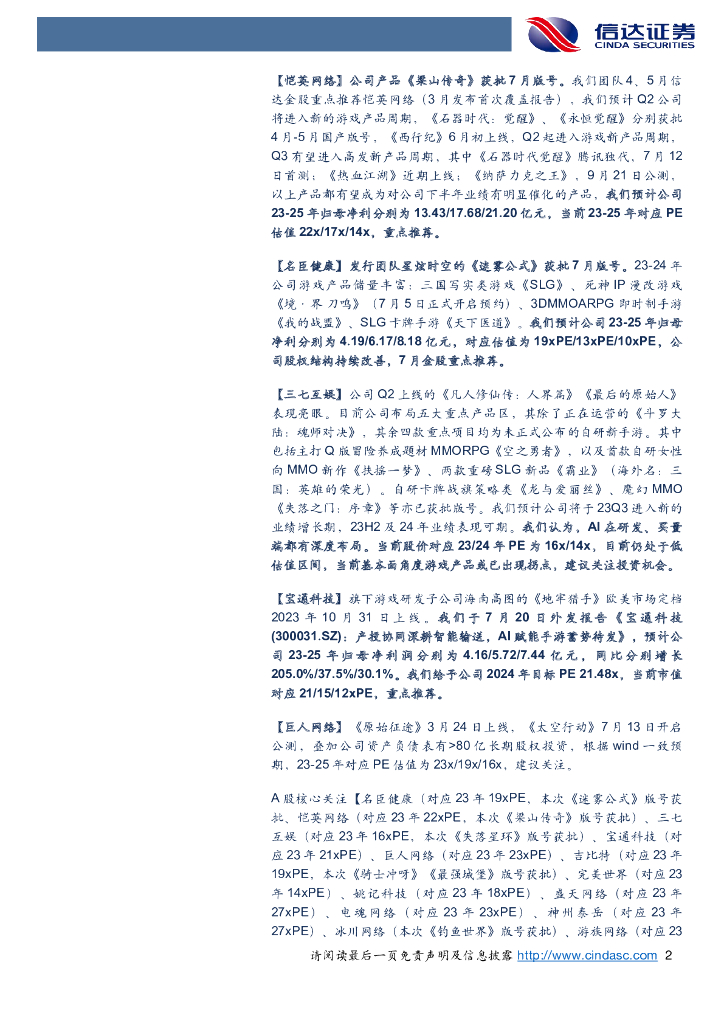 信达证券:游戏行业点评:七月国产游戏版号下发,短期关注CJ大会催化,中期看好Q4行业表现及AI催化.pdf
