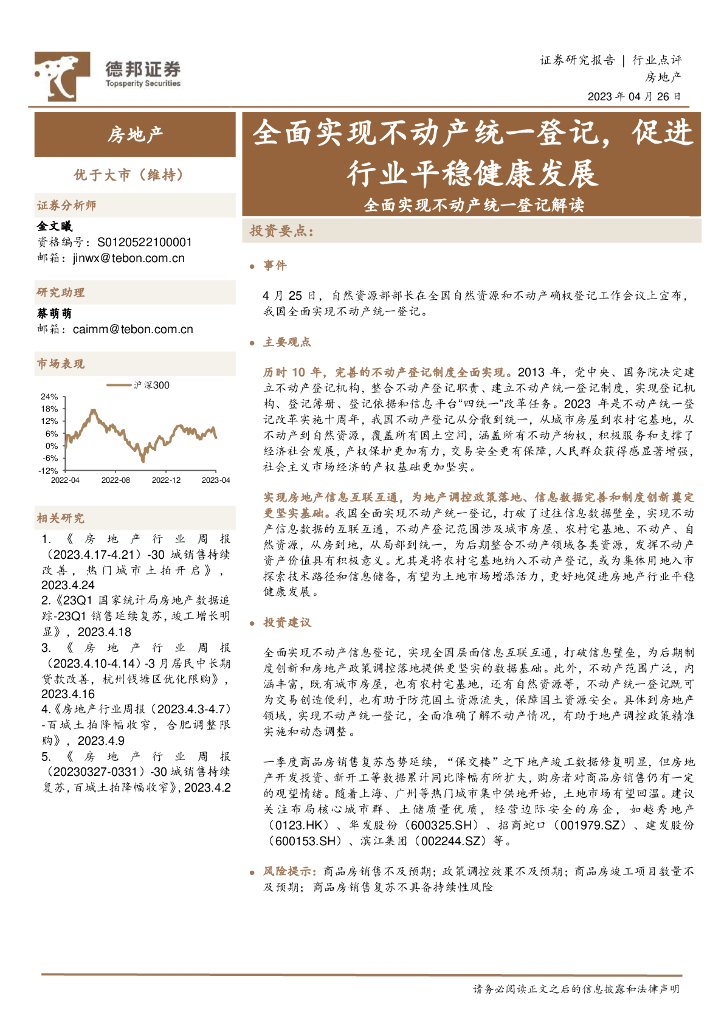 德邦证券:房地产:全面实现不动产统一登记解读-全面实现不动产统一登记,促进行业平稳健康发展.pdf