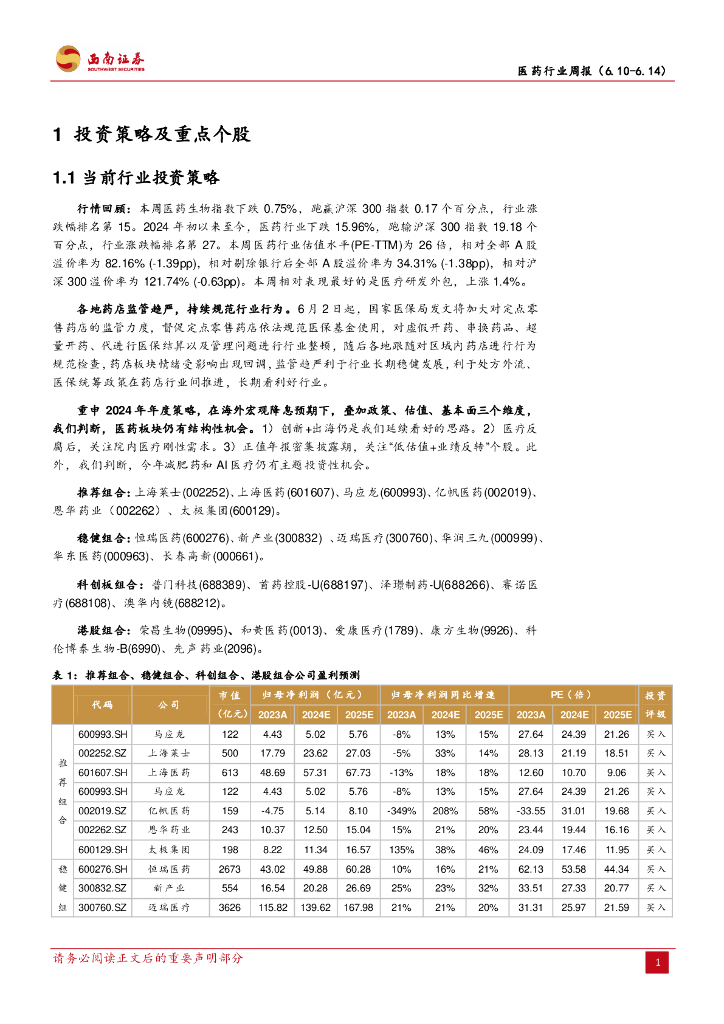 西南证券:医药行业周报:静待医药行情回暖.pdf