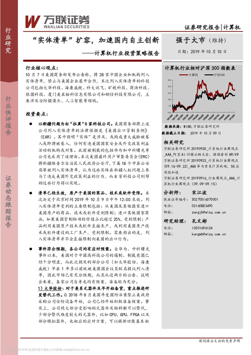 万联证券:计算机行业投资策略报告:“实体清单”扩容,加速国内自主创新.pdf