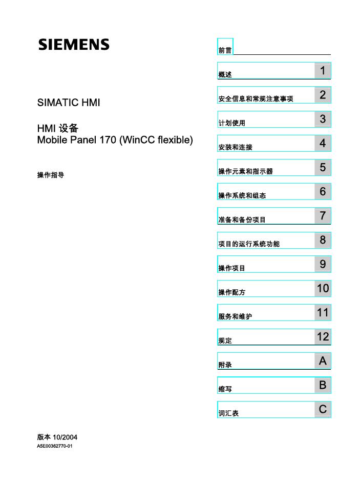 西门子 SIMATIC HMI HMI 设备 Mobile Panel 170 (WinCC flexible) 操作指导.pdf