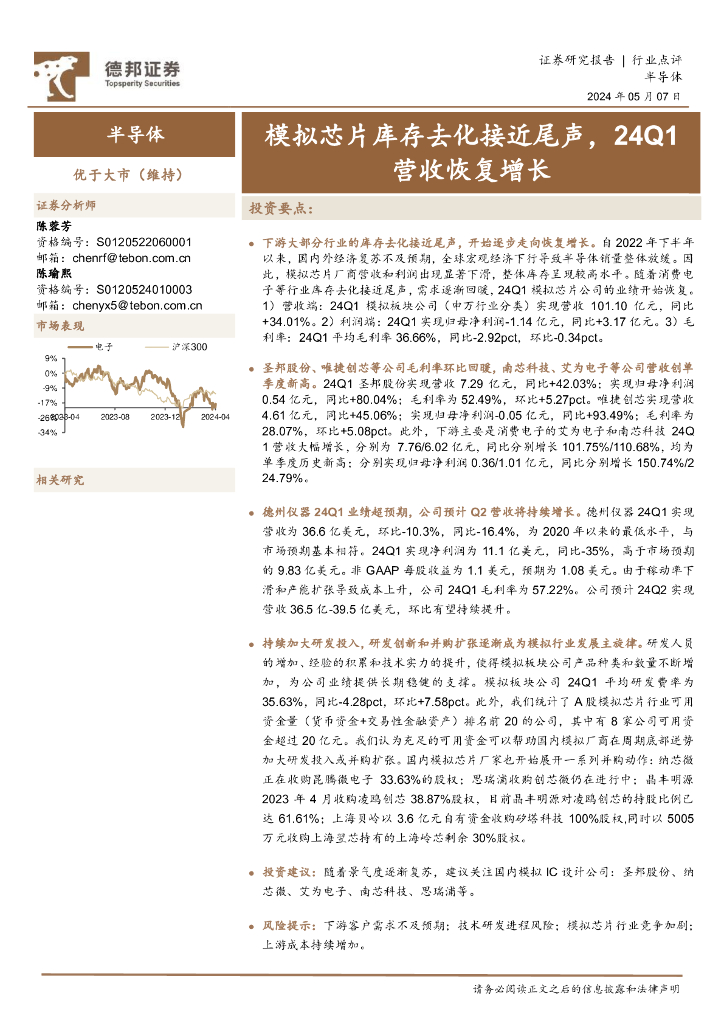 德邦证券:半导体:模拟芯片库存去化接近尾声,24Q1营收恢复增长.pdf