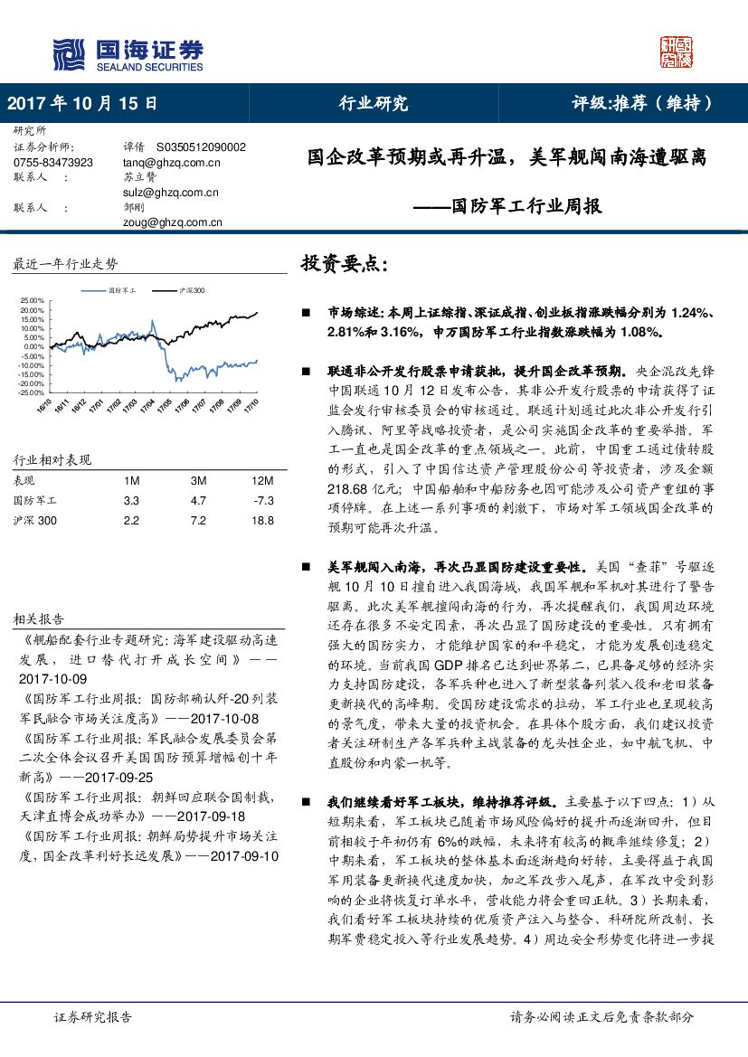 国海证券:国防军工行业周报:国企改革预期或再升温,美军舰闯南海遭驱离.pdf