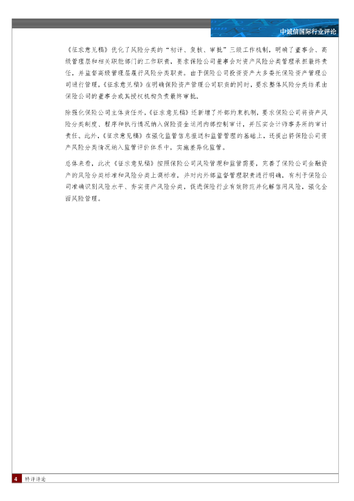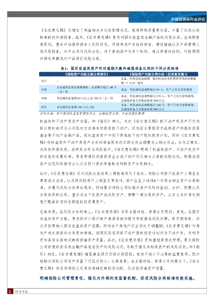 中诚信国际:保险行业研究:《保险资产风险分类办法(征求意见稿)》明确保险公司各类投资资产风险分类标准,强化内外部监督管理机制,压实投资端资产质量.pdf