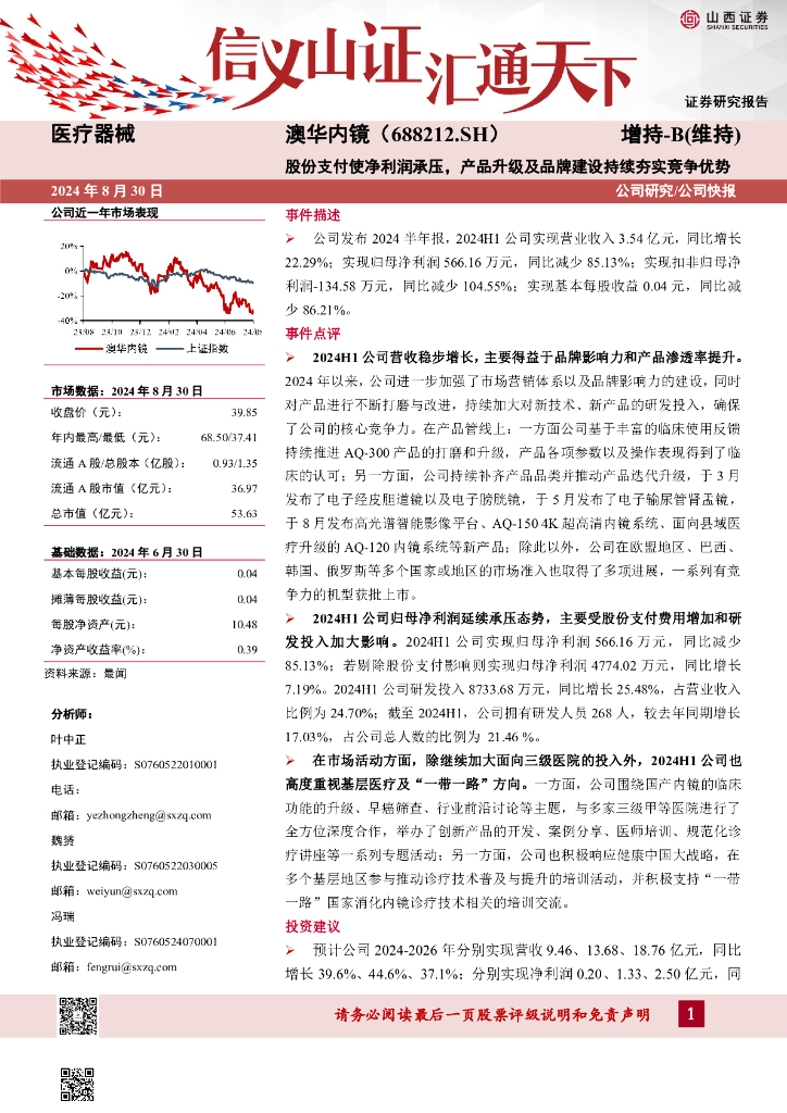 山西证券:澳华内镜(688212)-股份支付使净利润承压,产品升级及品牌建设持续夯实竞争优势.pdf