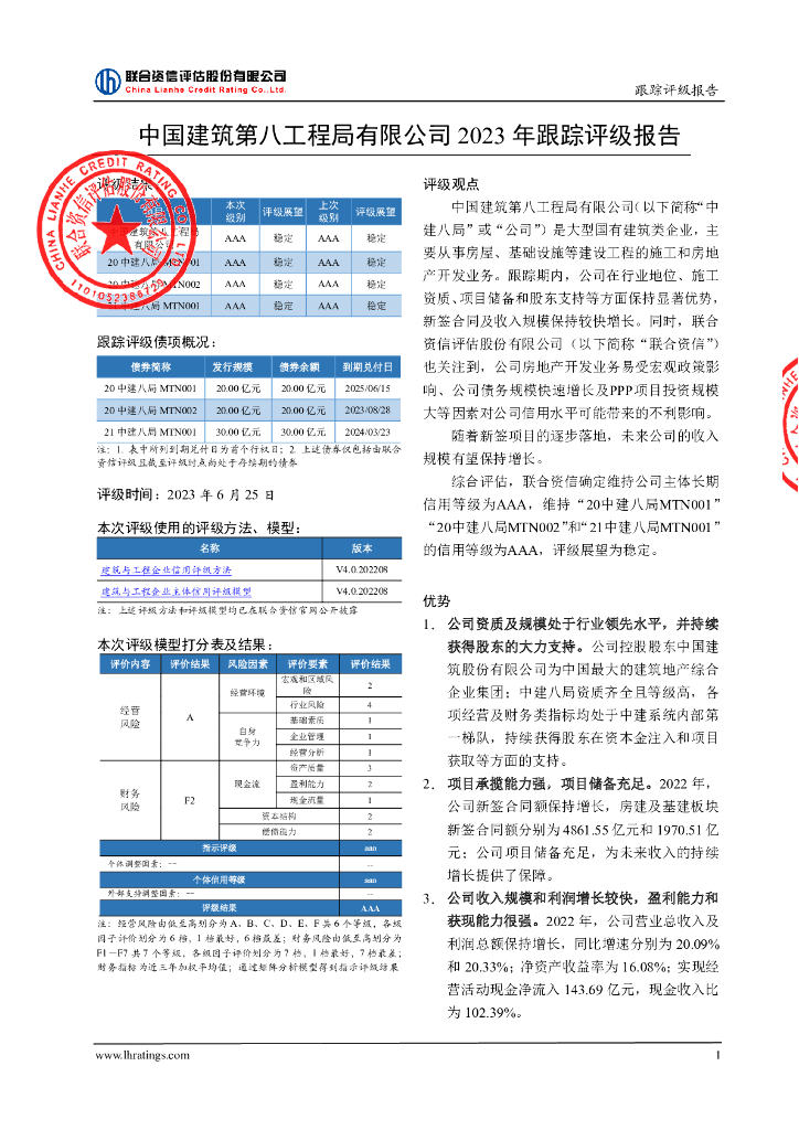 联合资信:中国建筑第八工程局有限公司2023年跟踪评级报告.pdf
