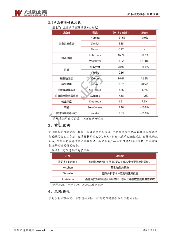 万联证券:医药生物:艾伯维2019全年业绩分析——“药王”销售下滑,多产品推动向好.pdf