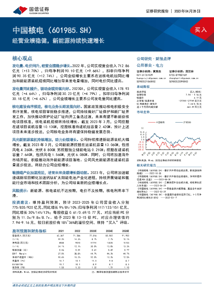 国信证券:中国核电(601985)-经营业绩稳健,新能源持续快速增长.pdf