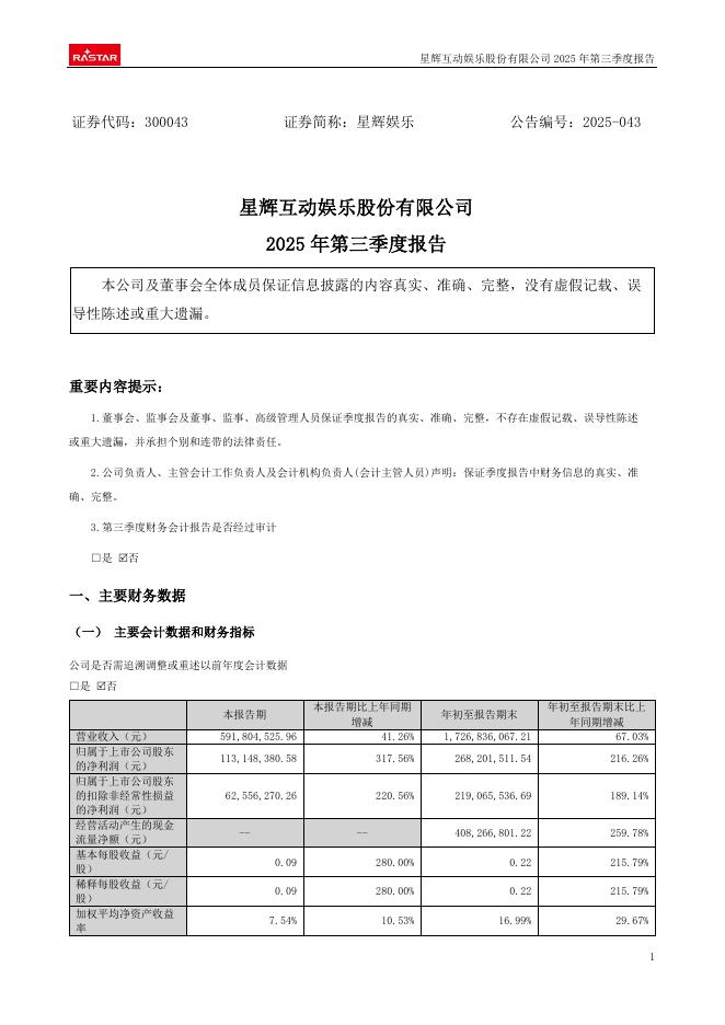 300043-星辉娱乐:2025年三季度报告.pdf