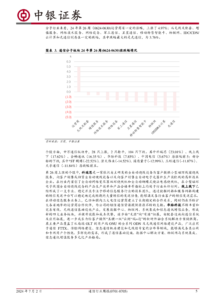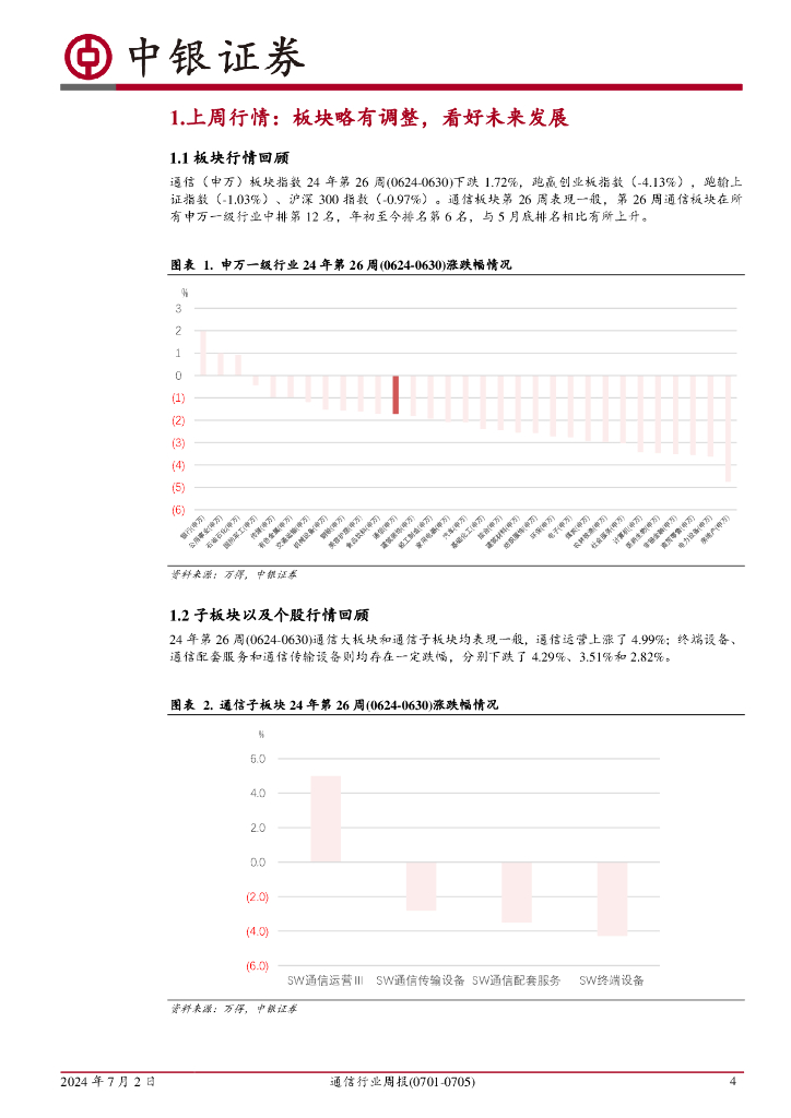 中银证券:通信行业周报:通信行业周报(0701-0705)板块略有调整,看好未来发展.pdf