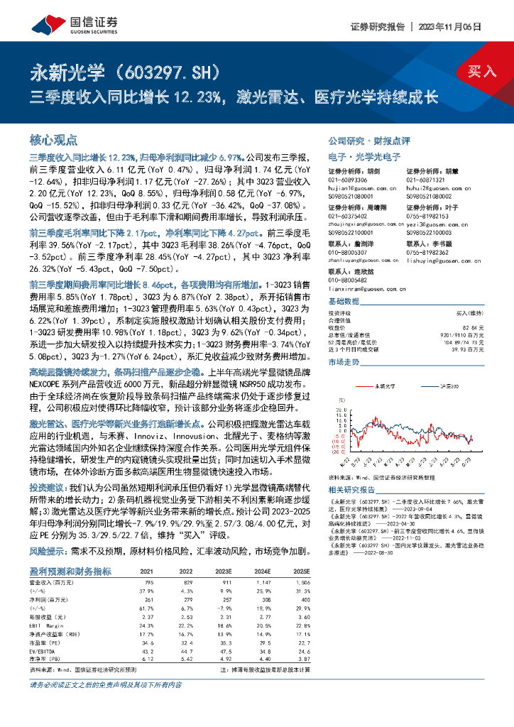 国信证券:永新光学(603297)-三季度收入同比增长12.23%,激光雷达、医疗光学持续成长.pdf
