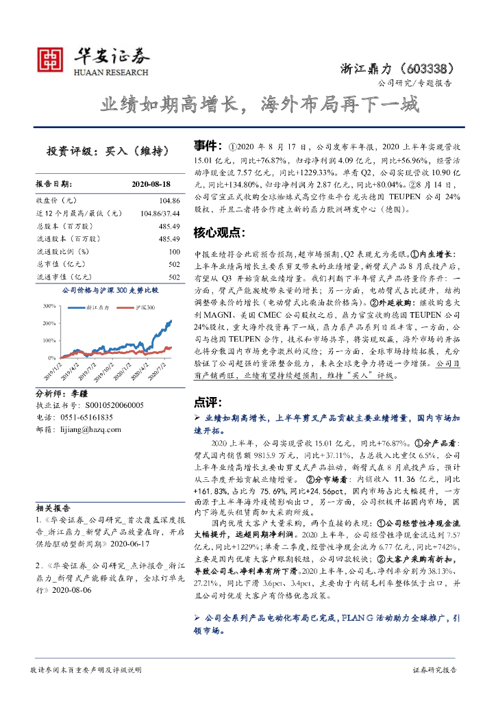 华安证券:浙江鼎力(603338)-业绩如期高增长,海外布局再下一城.pdf