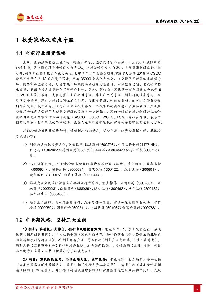 西南证券:医药行业周报:创新药盛会相继召开,坚守医药创新核心资产.pdf