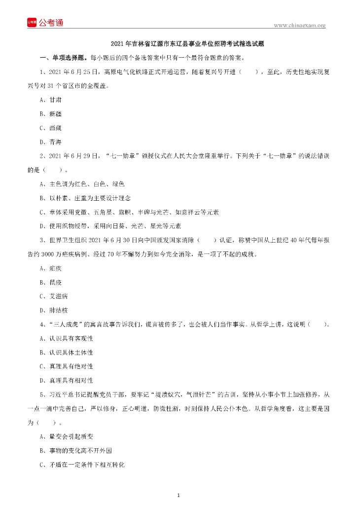 2021年吉林省辽源市东辽县事业单位招聘考试精选试题.pdf