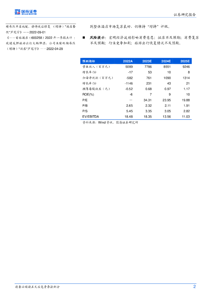 国海证券:首旅酒店(600258)-2023年半年度业绩预告点评:业绩符合预期,Q2 RevPAR恢复超疫前.pdf