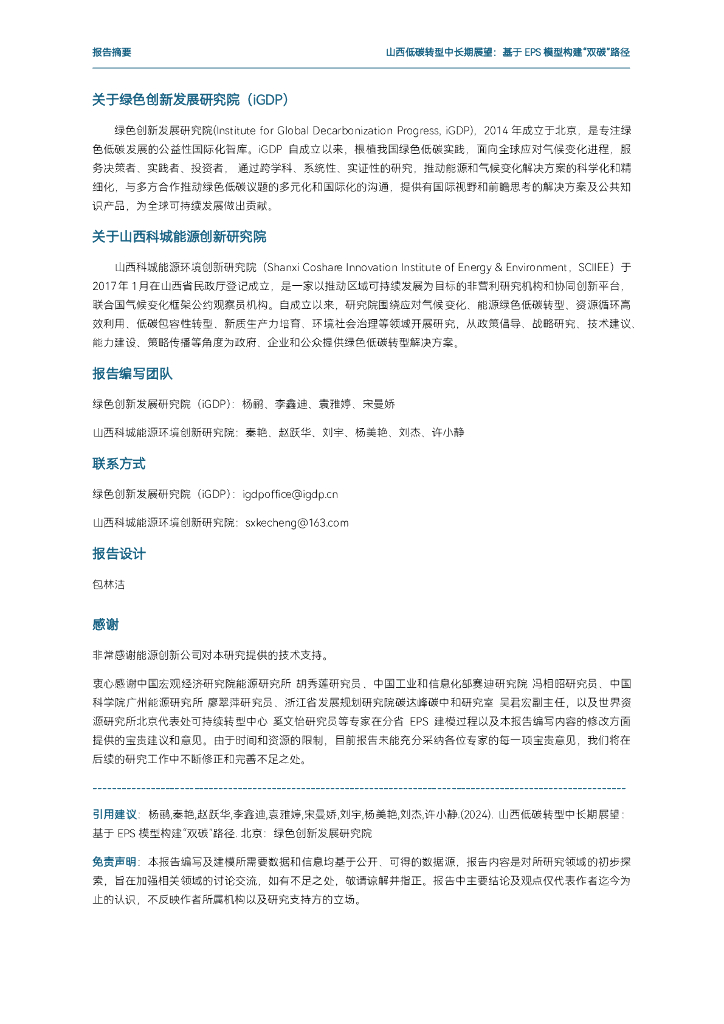 绿色创新发展研究院(iGDP):2024年山西低碳转型中长期展望-基于EPS模型构建双碳路径报告摘要.pdf
