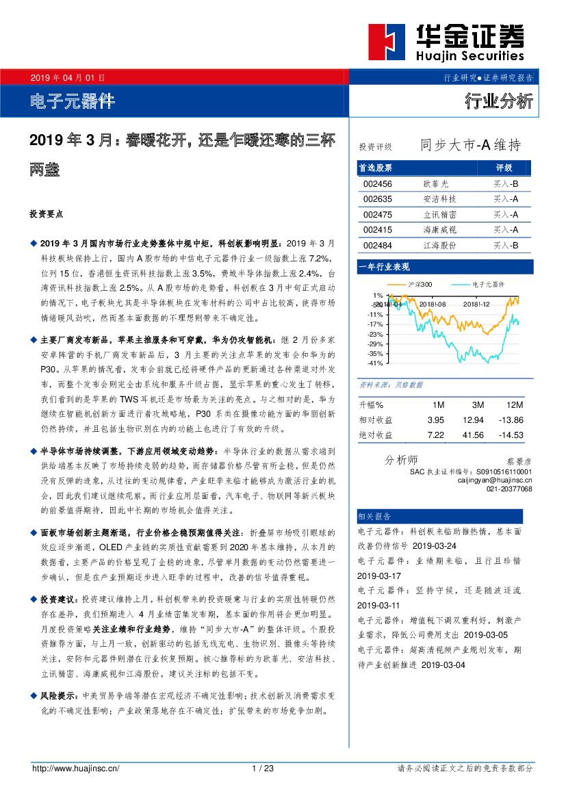 华金证券:电子元器件行业分析:2019年3月:春暖花开,还是乍暖还寒的三杯两盏.pdf
