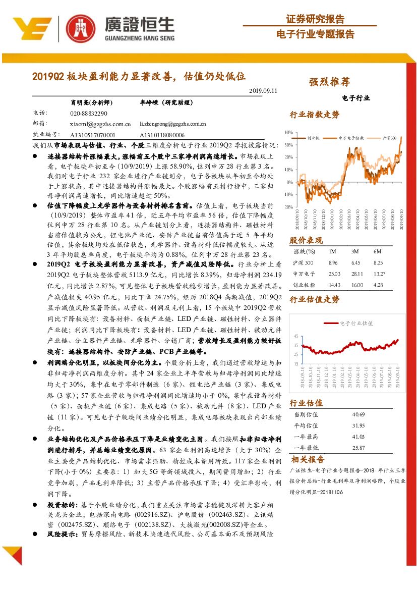 广证恒生证券研究所:电子行业专题报告:2019Q2板块盈利能力显著改善,估值仍处低位.pdf