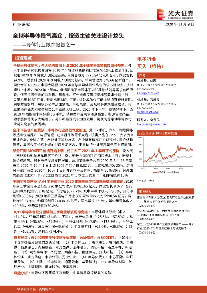光大证券:半导体行业跟踪报告之一:全球半导体景气高企,投资主轴关注设计龙头.pdf