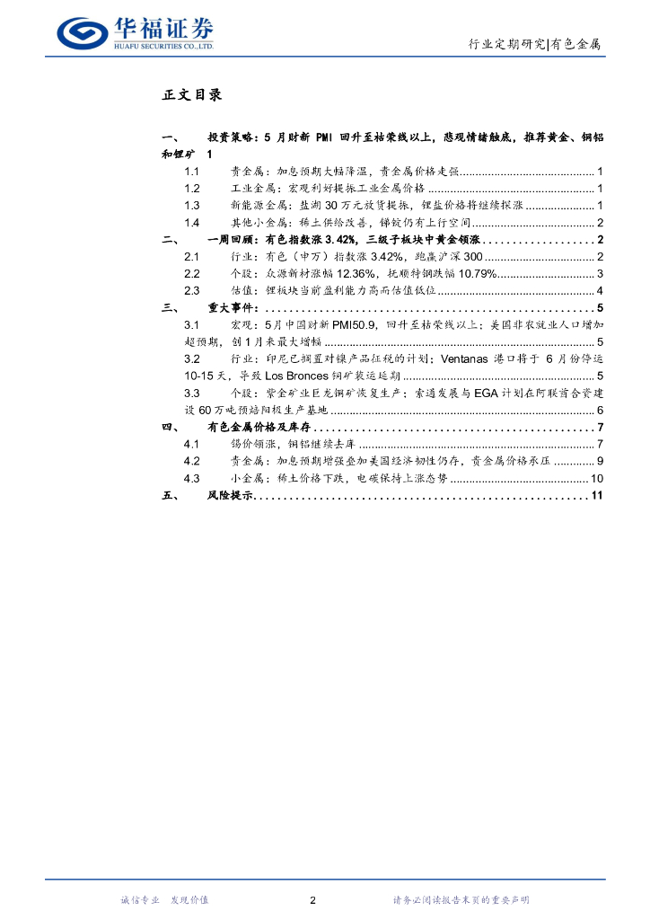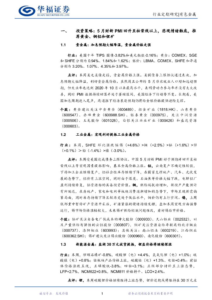 华福证券:有色金属行业周报:5月财新PMI回升至枯荣线以上,悲观情绪触底,推荐黄金、铜铝锡和锂矿.pdf