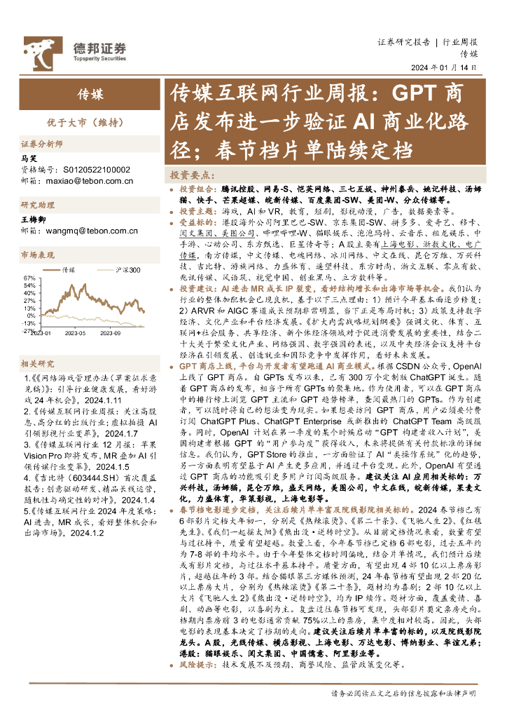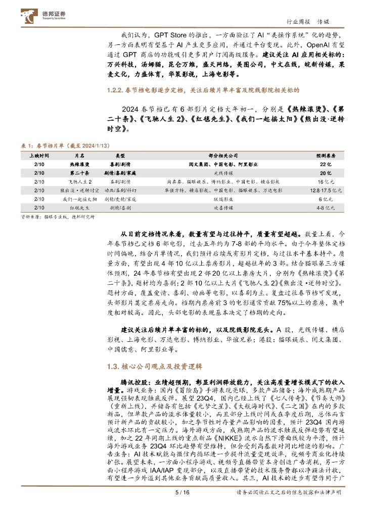 德邦证券:传媒互联网行业周报:GPT商店发布进一步验证AI商业化路径;春节档片单陆续定档.pdf