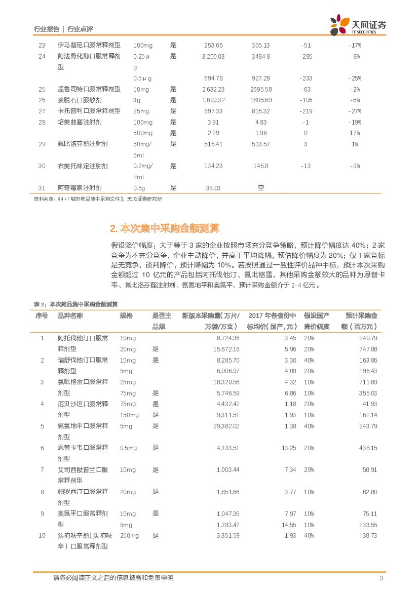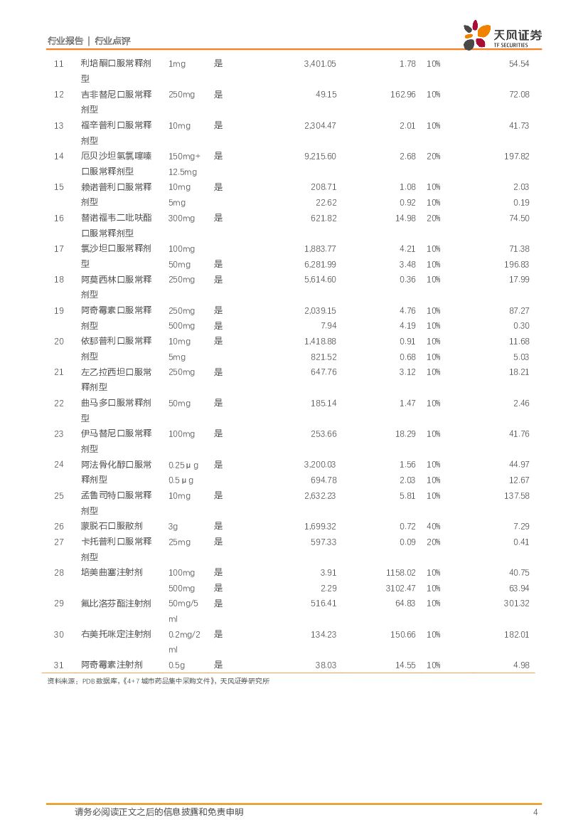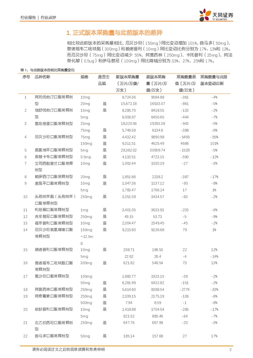 天风证券:医药生物行业点评:带量采购文件正式出台,短期关注企业集采的业绩弹性,中长期关注企业的仿制药产品梯队建设.pdf