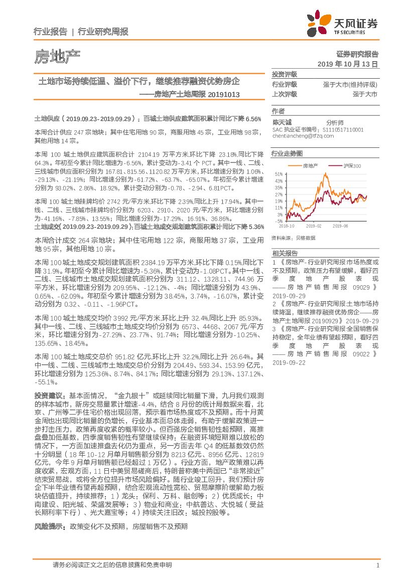 天风证券:房地产土地周报:土地市场持续低温、溢价下行,继续推荐融资优势房企.pdf