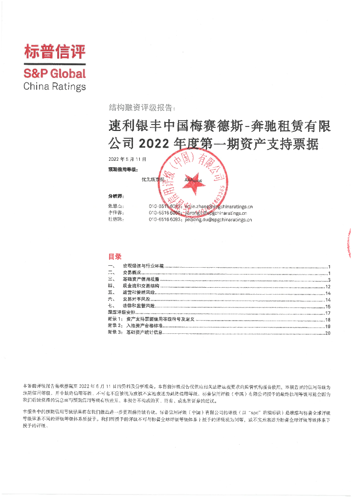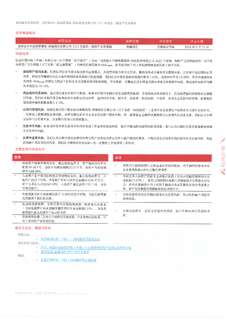 标普信评:速利银丰中国梅赛德斯-奔驰租赁有限公司2022年度第一期资产支持票据信用评级报告.pdf
