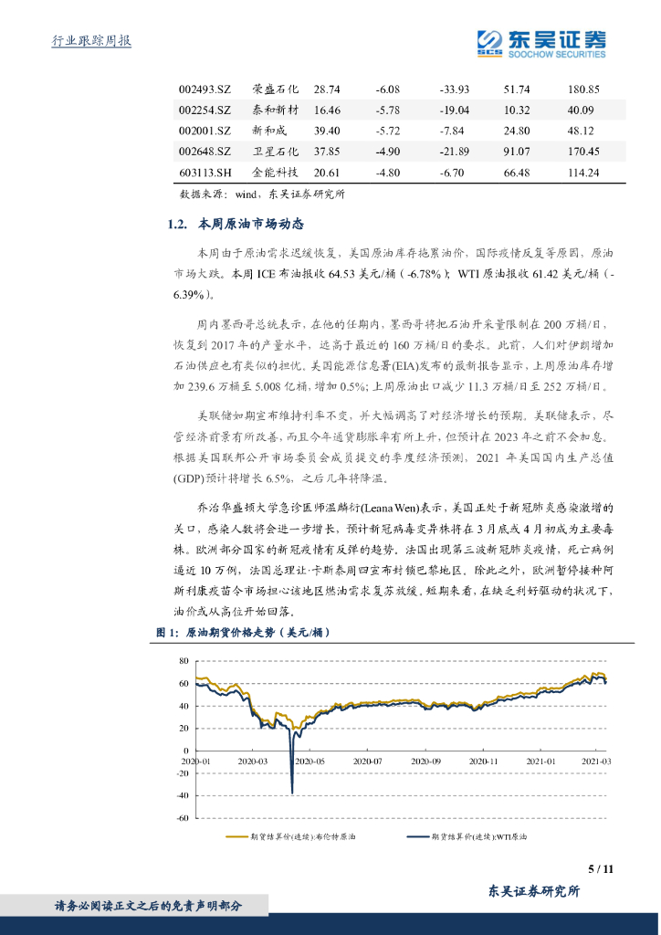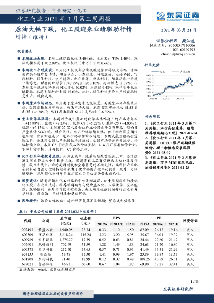 东吴证券:化工行业2021年3月第三周周报:原油大幅下跌,化工股迎来业绩驱动行情.pdf