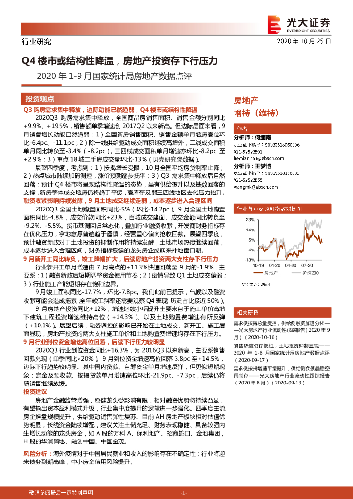 光大证券:2020年1-9月国家统计局房地产数据点评:Q4楼市或结构性降温,房地产投资存下行压力.pdf