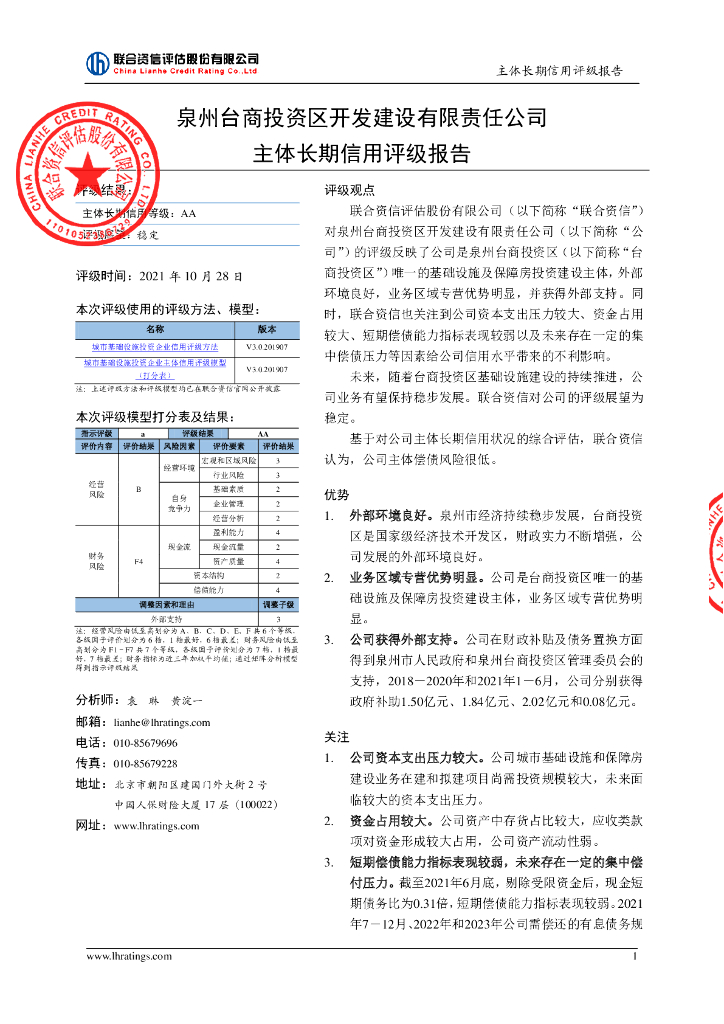 联合资信:泉州台商投资区开发建设有限责任公司主体长期信用评级报告.pdf