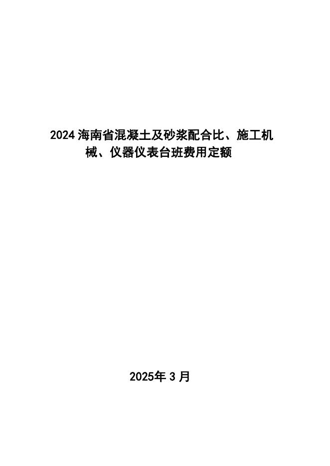 2024海南省混凝土及砂浆配合比、施工机械、仪器仪表台班费用定额.pdf