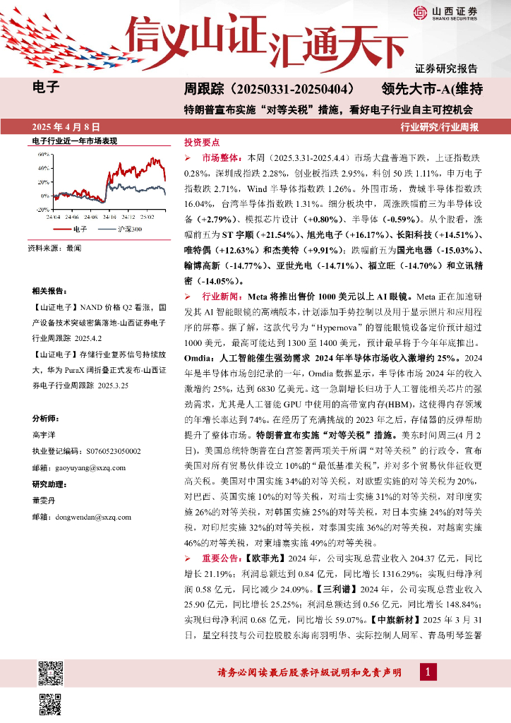山西证券:电子周跟踪:特朗普宣布实施“对等关税”措施,看好电子行业自主可控机会.pdf