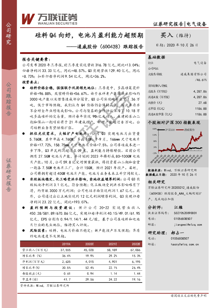 万联证券:通威股份(600438)-跟踪报告:硅料Q4向好, 电池片盈利能力超预期.pdf