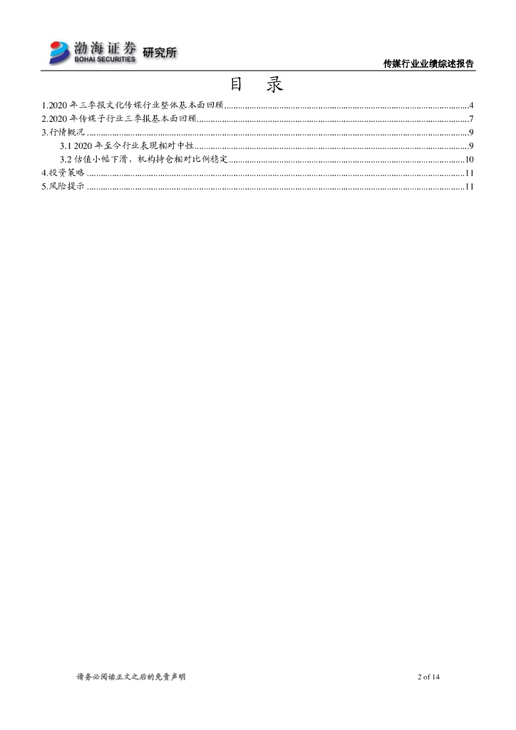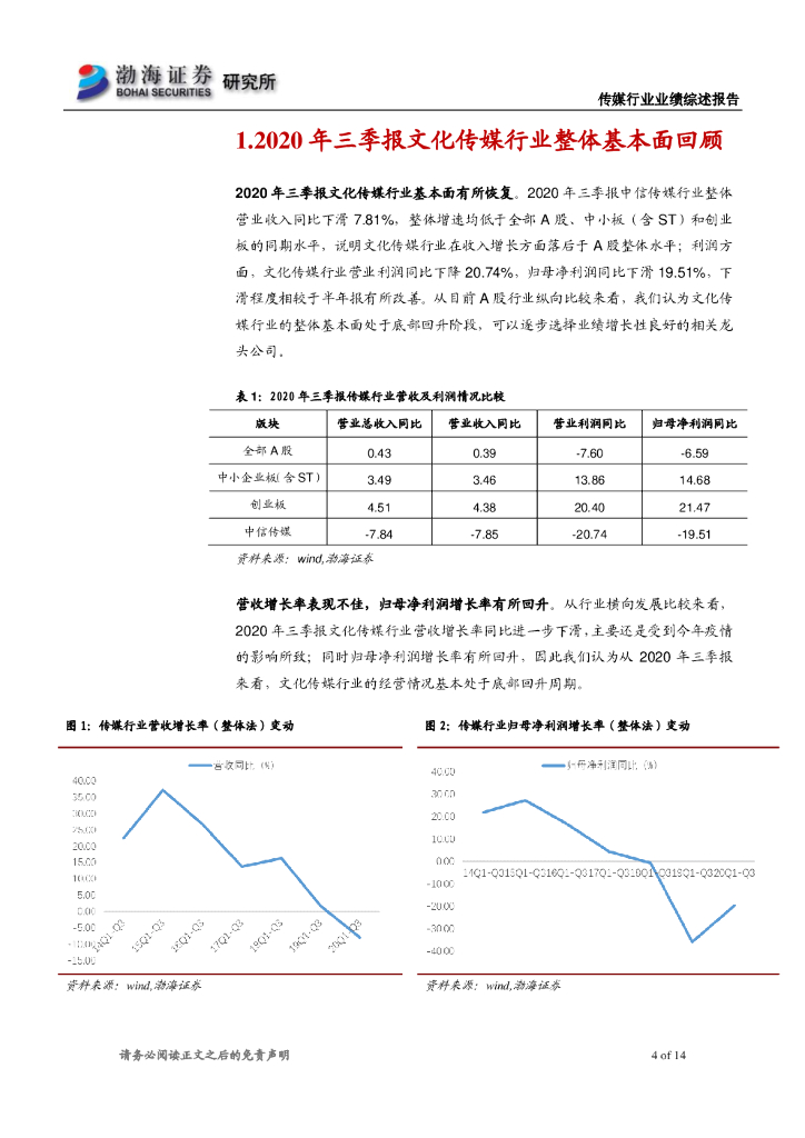 渤海证券:传媒行业三季报业绩综述:基本面有所恢复,以业绩为主线.pdf