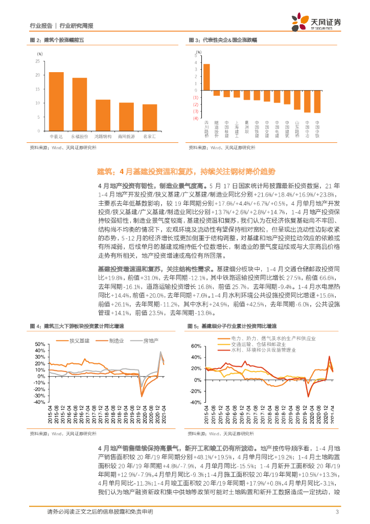 天风证券:建筑装饰行业:4月基建投资温和复苏,持续关注钢材降价趋势.pdf