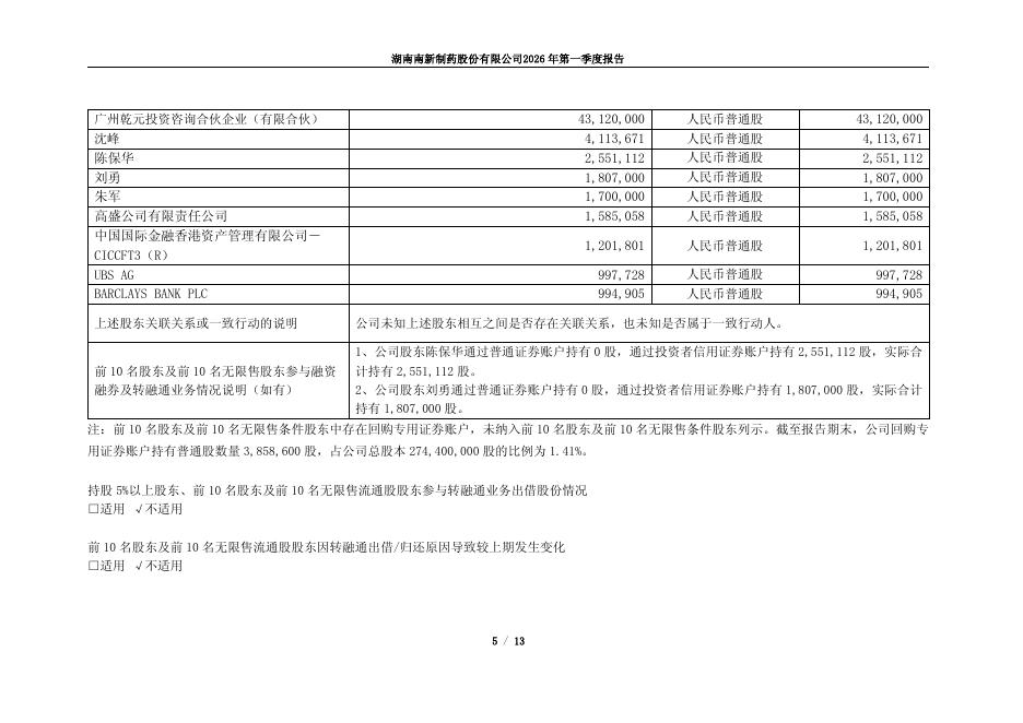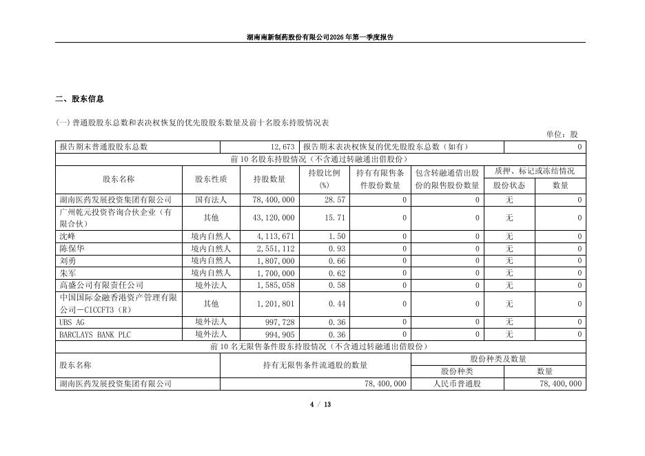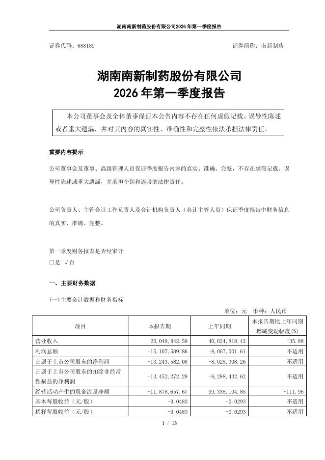 688189-南新制药:南新制药2026年一季度报告.pdf