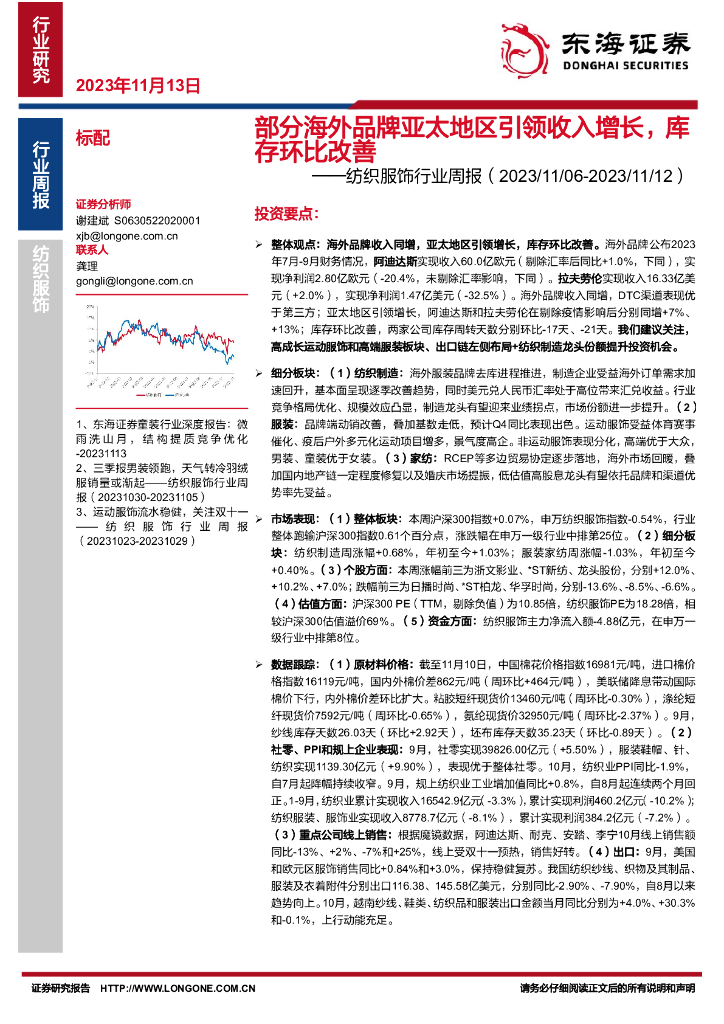 东海证券:纺织服饰行业周报:部分海外品牌亚太地区引领收入增长,库存环比改善.pdf