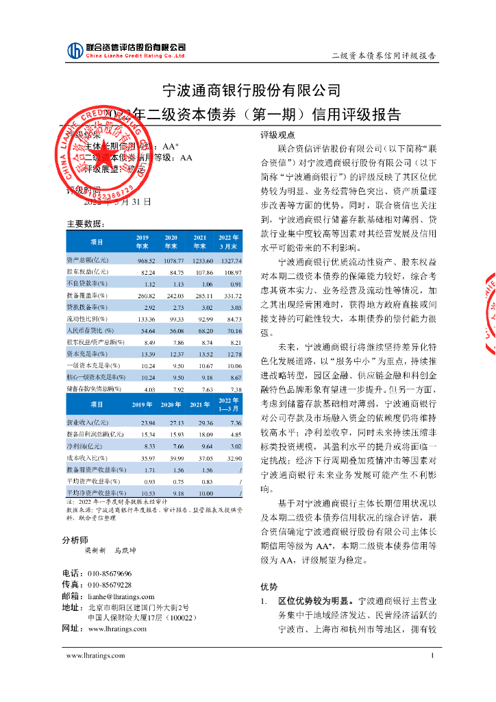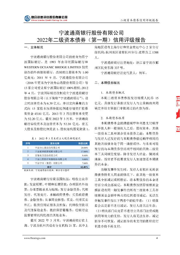 联合资信:宁波通商银行股份有限公司2022年二级资本债券(第一期)信用评级报告.pdf
