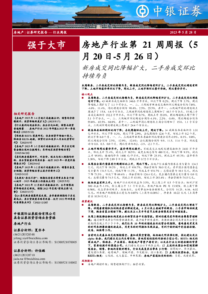 中银证券:房地产行业第21周周报:新房成交同比降幅扩大,二手房成交环比持续为负.pdf