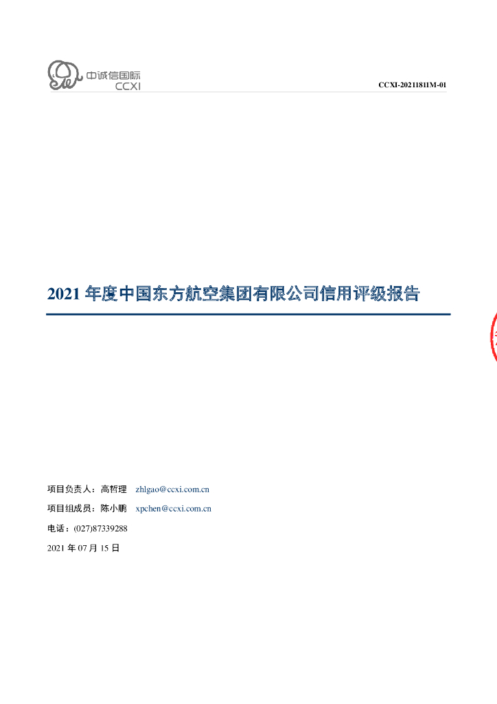 中诚信:中国东方航空集团有限公司主体信用评级报告及跟踪评级安排.pdf