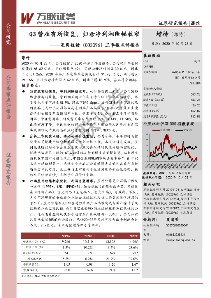 万联证券:星网锐捷(002396)-三季报点评报告:Q3营收有所恢复,归母净利润降幅收窄.pdf
