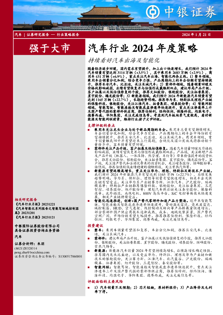 中银证券:汽车行业2024年度策略-持续看好汽车出海及智能化.pdf